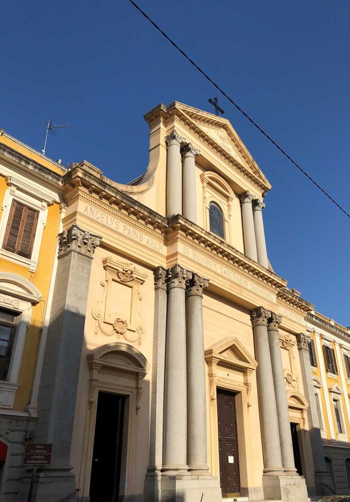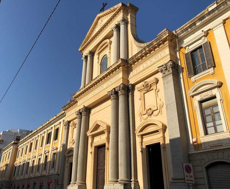 La prima Cattedrale del Santissimo Salvatore fu fondata dal Gran Conte Ruggero il Normanno nella seconda metà del secolo XI ed eretta da suo figlio Ruggero II nella parte terminale della penisola falcata di San Raineri. Il complesso religioso venne destinato ai monaci basiliani ed ebbe una vasta giurisdizione territoriale sui monasteri siciliani e calabresi, retto da un Abate detto Archimandrita e indipendente dai Vescovi nelle cui diocesi sorgevano i monasteri basiliani. Nel 1383 il monastero ospitò papa Urbano VI e in esso ebbe sede una celebre scuola di greco dove insegnò il famoso Costantino Lascaris. In parte distrutto da un fulmine nel 1549, il monastero fu demolito per ordine dell’imperatore Carlo V per far posto al Castello del Santissimo Salvatore sulla punta della falce. Nel 1549 i Padri Basiliani si trasferirono a nord della città, nell’area della “Spianata dei Greci” dove oggi sorge il Museo Regionale alla foce del torrente “Annunziata” e lì costruirono una nuova chiesa ed un nuovo convento. Dopo le leggi eversive del 1866, il monastero venne trasformato in caserma della Guardia di Finanza e l’intero complesso religioso cadde nel terremoto del 1908.