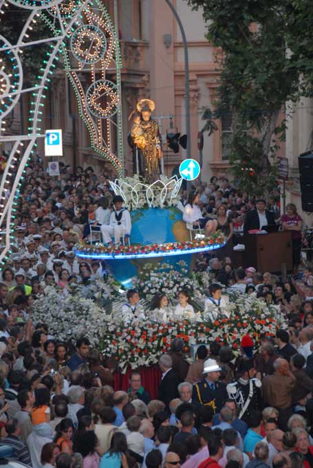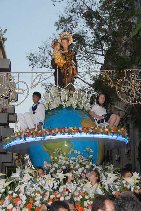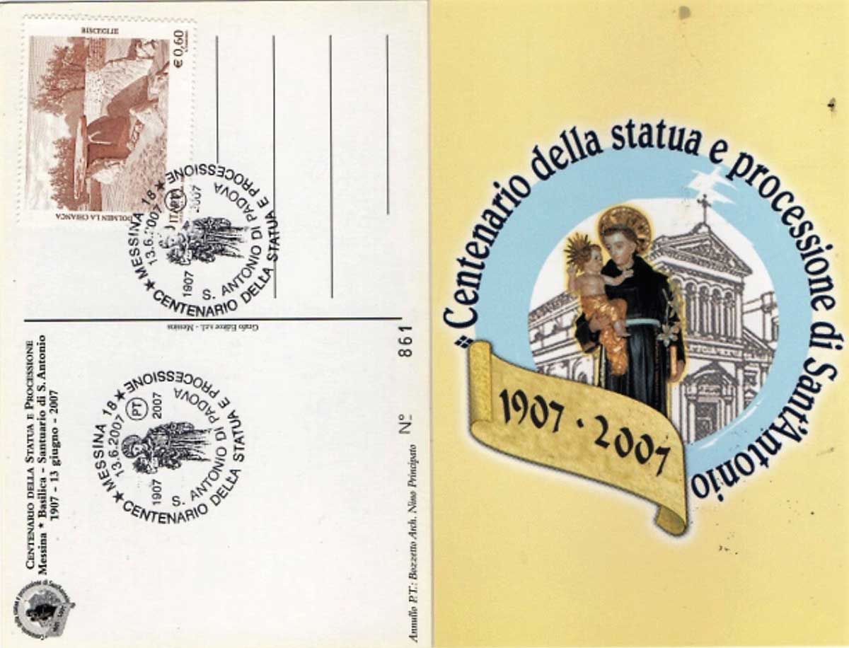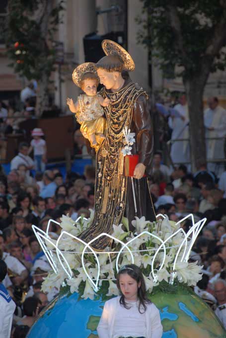Il santo è stato qui, a Messina, e proprio a Messina compì il suo primo miracolo. Nella Chiesa di San Francesco d’Assisi all’Immacolata si conserva la mattonella sulla quale caddero le gocce di sangue di S. Antonio. Per capirne il motivo, dobbiamo proiettarci nella primavera del 1221… Antonio, dopo essere naufragato a Milazzo di ritorno dall’Africa, si dirige verso Messina dove i frati francescani avevano costruito nel 1212 un convento. Il convento non ha un pozzo e Antonio osserva la penosa fatica dei confratelli che sono costretti a recarsi alla distante pubblica fontana per attingervi il prezioso liquido: prodigiosamente fa allora sgorgare l’acqua nel giardino del chiostro. Pochi giorni dopo, il superiore frate Leonardo ritorna al convento da Assisi e ne viene aspramente ripreso. Mortificato, Antonio si flagella pubblicamente genuflesso a terra e alcune gocce del suo sangue cadono, così, sul pavimento. Fuori verdeggia l’albero d’aranci (“portogalli”) che Antonio ha piantato vicino al pozzo: un gesto gentile, scaturito dalla nostalgia per la sua terra portoghese e che punteggerà i posti che il santo visiterà nel suo lungo peregrinare, come un segno particolare della sua presenza.