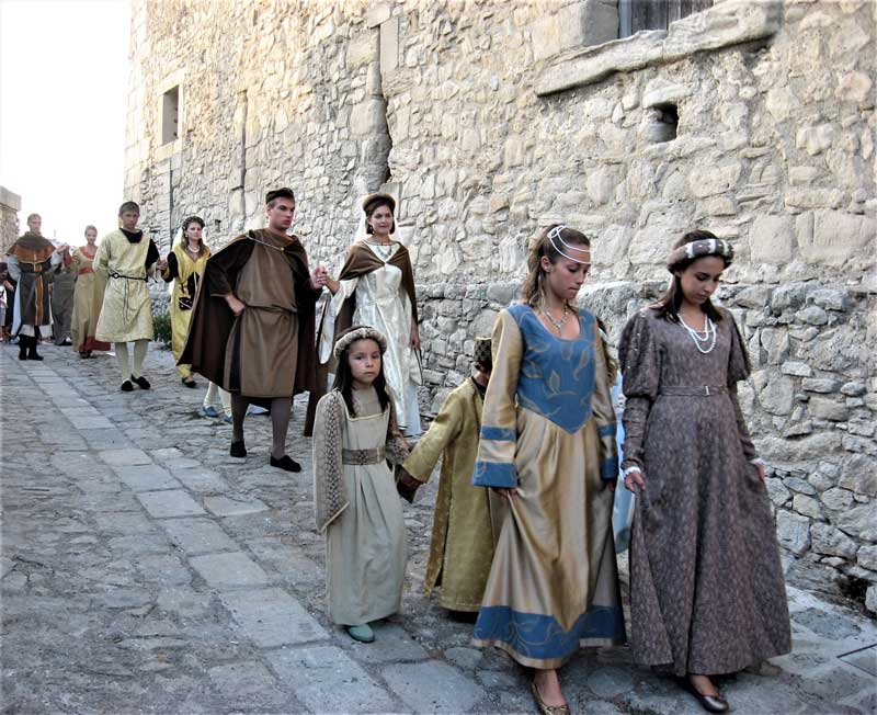 Da oltre 40 anni si svolgono in agosto a Montalbano Elicona e ne rappresentano il fiore all’occhiello dell’estate montalbanese. Viene rievocato in costume medievale l’arrivo di Federico III a Montalbano Elicona, sua residenza estiva prediletta. Il sovrano venne con la giovane moglie Eleonora, lui un uomo di 30 anni, lei poco più che una bambina, appena tredicenne. A lei avrebbe donato diverse terre del regno, Siracusa, Paternò, Avola, Pantelleria, Mineo dove avrebbe esercitato piena sovranità. Nel suggestivo corteo che parte dal Castello sfilano gli alfieri portastendardo con i blasoni delle famiglie nobili, i Balsamo, gli Alagona, i Lancia, gli Arlotta. Nei costumi più preziosi e ricercati sfilano le dame al braccio dei cavalieri, seguiti da un divertente “cammello” con tamburini di foggia araba, soldati, bambini e bambine recanti doni fra cui il famoso pane prodotto locale, donzelle con mazzi di fiori, Federico con la moglie Eleonora, giocolieri, giullari, Cavalieri Templari, Cavalieri Teutonici, il Vescovo, suonatori di zampogna e tamburello. Oltre al corteo, le botteghe dei mestieri tradizionali ripropongono l’atmosfera medievale nel segno della tradizione e dello spettacolo.