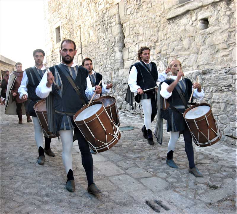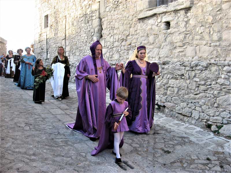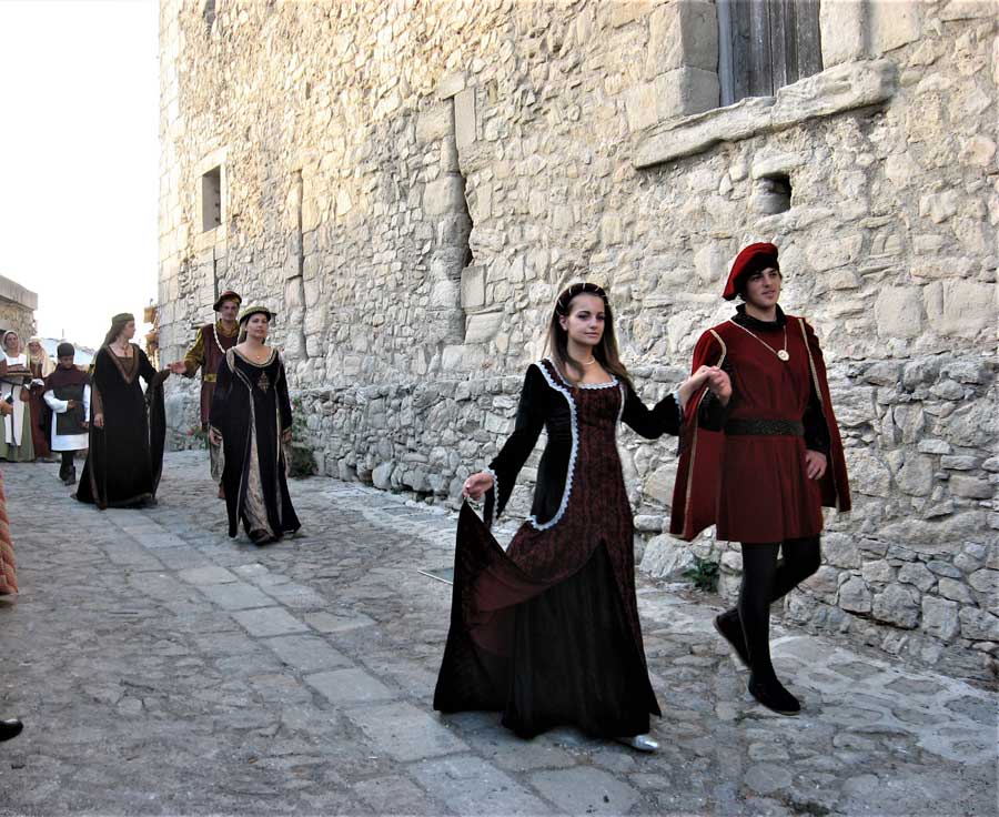Molto ricco e interessante, ogni anno, il calendario degli eventi collaterali al momento clou rappresentato dal corteo in costume con l’ingresso di Federico III e la moglie Eleonora in “Terram et Castrum Montis Albani”. Visite guidate al Castello svevo-aragonese e la degustazione di pietanze medievali, quali il biancomangiare, cibo di strada e vino speziato nella “Taberna degli Almogaveri”. La “Festa Medievale”, un percorso tra botteghe, accampamenti, falconieri, giochi e spettacoli di animazione. Fra questi, il “Torneo di tiro dell’arco”, il “Palio dei Quartieri”, i “Giochi Medievali”. E non mancano giullari, acrobati, trampolieri, giocolieri, mangiafuoco, lo spettacolo dell’antica arte della falconeria, caccia della quale era campione indiscusso Federico II di Svevia nel sec. XIII, al punto da scrivere il famoso trattato “De arte venandi cum avibus” nel 1260. Musica, sbandieratori e danze orientali si integrano perfettamente alle caratteristiche medievali del Borgo esaltandone il fascino delle case costruite in pietra.
