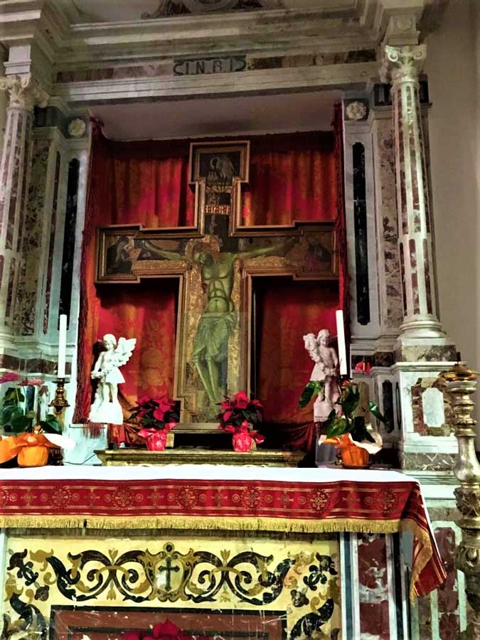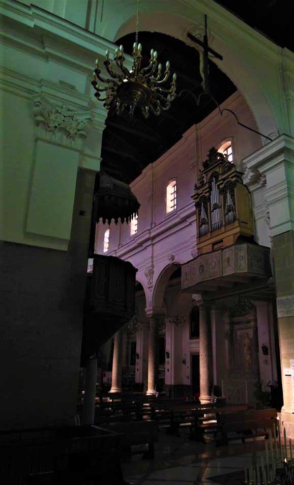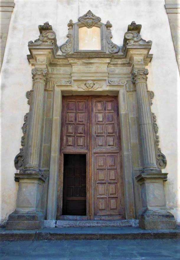 Edificata agli inizi del sec. XV e quasi completamente distrutta da un sisma nel 1649, fu interamente rifatta modificandone l’orientamento che era ad est, secondo le antiche prescrizioni liturgiche. La pianta è venuta così a sovrapporsi a quella della primitiva chiesa, della quale si conservano l’abside e il transetto alle spalle della sagrestia. Nel 1693 fu ancora danneggiata da un secondo terremoto, quello del Val di Noto, e nel 1707 restaurata dai Maestri M. Antonino e S. Villarà, come testimoniano le scritte ancora esistenti sulla terza trave del tetto e sulla finestra centrale della navata laterale: "Hoc opus fecit M. Antoninu S. Villarà 1707". La chiesa è facilmente riconoscibile in vari film girati a Forza d’Agrò; ricordiamo Il Padrino di Francis Ford Coppola con Marlon Brando, Il Padrino-Parte II e Il Padrino-Parte III. La facciata a carattere monumentale è ispirata all’ordine gigante romano, tripartita da alte lesene e coronata da pennacchi e volute. I tre portali, così come il finestrone in asse con quello maggiore, sono in stile tardo barocco che si avvicina al rococò. Il Campanile seicentesco, danneggiato dal terremoto del 28 dicembre 1908, fu in parte rifatto nel 1920.
