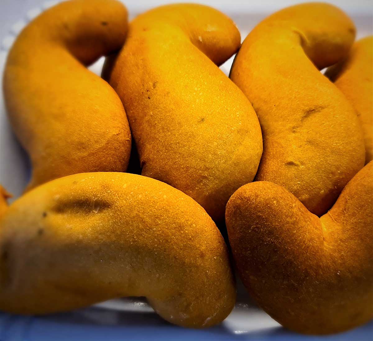 Certamente non si può negare che il nome di queste specialità dolciarie sanfratellane sia abbastanza imbarazzante, anche se il nome, in realtà, deriva dal termine dialettale gallo-italico “pumpìan” ad indicare qualcosa che è stata fatta in pompa magna. I “pumpini” Vengono preparati con semplici ingredienti, farina 00, uova, latte, strutto, zucchero, lievito, vanillina e semi di anice. E’ un dolce tipico del periodo pasquale e per questo al centro del biscotto a forma di treccia viene collocato un uovo sodo, come nelle “cuddhure” messinesi.