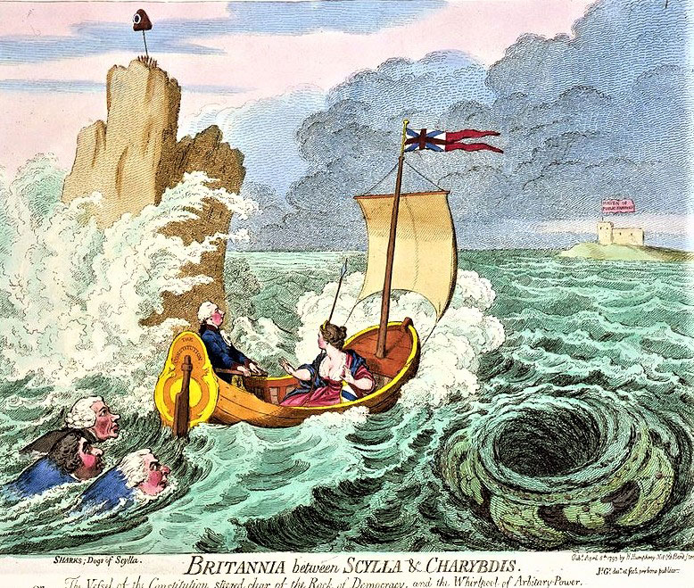 Avendo rubato i buoi ad Ercole, Cariddi per punizione fu da Giove trasformata in quel pericoloso gorgo dello Stretto di Messina, apertosi dalla saetta scagliata dal Nume. Nella leggenda omerica, le acque che inghiotte e rigetta sono il ricordo evidente dell’effetto ivi prodotto dal flusso e riflusso di marea. Cariddi si identifica col “garofalo” (in dialetto “galoffuru”), gorgo che si forma fra Capo Faro e Punta Sottile dall’incontro di correnti contrarie, corrispondendo perfettamente alla descrizione omerica che paragona quel mare ad una marmitta in ebollizione. Questi vortici sono dovuti ad una combinazione di fattori che caratterizzano quest’area, come l’incontro-scontro di due mari, il Tirreno e lo Ionio. Se il Tirreno è più alto dello Ionio il flusso di acqua si muoverà Nord-Sud originando la cosiddetta rema scendente. Quando la situazione si capovolgerà si avrà la rema montante. Proprio queste dinamiche caotiche delle maree dello Stretto, nell’antichità, hanno dato origine a Cariddi: il mostro senza volto che risucchiava le navi dagli abissi producendo vortici e gorghi. Questo flusso e riflusso sarà altresì evidenziato da Dante nella “Divina Commedia”: “Come fa l’onda là sopra Cariddi che si frange con quella in cui s’attoppa”.