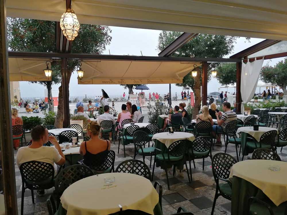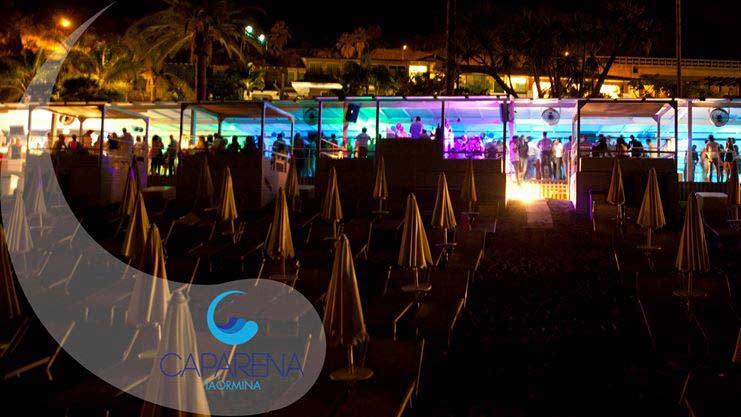 La vita notturna di Taormina offre alla movida tutta una serie di attrattive che vanno dai lounge bar, ai beach bar e alle discoteche. In compagnia di buona musica si va al Morgana Lounge Bar in Scesa Morgana 4, elegante location dove gustare ottimi cocktail. Fra gli altri, Q Lounge Bar (Piazza Paladini, 6); White Bar (Piazza Garibaldi 6/7); Daiquiri (Piazza Duomo); Deja Vu Cocktail Bar Rastaurant & Wine Bar (Piazza Garibaldi, 2); Mocambo Bar (Piazza IX Aprile). Il Piliere, cocktails Bar con Live Music in Corso Umberto 42, ha una location particolare, l’interno della ex Chiesa quattrocentesca di S. Maria del Piliere ed è aperto tutti i giorni dalle 19,00 alle 3,00. In Largo Giuseppe La Farina 6 si trova O’ Seven Irish Pub dove si gusta l’ineguagliabile birra scura irlandese Guinness con la musica delle live band. E infine, fra le discoteche, l’elegante Caparena Exclusive Club in via Nazionale 189 che organizza anche eventi con artisti nazionali e internazionali; il Panasia Beach a Spisone in via Nazionale; Le Perroquet, di fronte al San Domenico Palace Hotel e la storica discoteca Septimo di via S. Pancrazio, nata sulle ceneri dell’”Eden” e che costituiva l’alternativa al Tout Va.