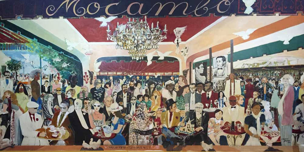Al Caffè concerto “Mocambo” di piazza IX Aprile fondato nel 1944, locale cult del jet set taorminese e degli incontri mondani, nel 1976 il pittore francese Christian Bernard amico dell’allora titolare Robertino Fichera dipinse in una parete un grande affresco dove sono raffigurati alcuni storici personaggi frequentatori del locale: "Que la fête commence", si legge ai piedi del dipinto.