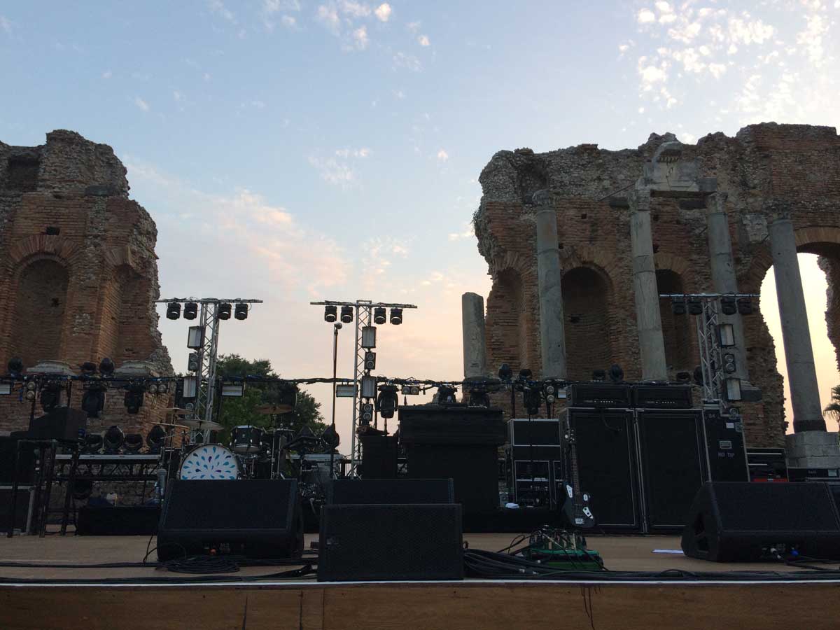 Non solo teatro classico e contemporaneo, non solo cinema, non solo musica concertistica, non solo lirica ma anche “indie rock”, “rock psichedelico”, “rock elettronico”, “rock spaziale”: di tutto ciò hanno potuto godere gli appassionati il 19 luglio 2017 al Teatro Greco-Romano per il memorabile concerto dei Kasabian. Una band formatasi a Leicester nel 1997 e formata da Sergio Pizzorno, polistrumentista di origine italiana, Tom Maighaan voce, Chris Edwards basso, Ian Matthews batteria e Tim Carter chitarre. Il Teatro Greco-Romano by Night è appunto il luogo dove si incontrano le ultime tendenze più rivoluzionarie e le avanguardie della musica con larghissima partecipazione di pubblico: a giugno 2017 vi si esibì Eddie Vedder che per la prima volta in Italia da solista, leader dei Pearl Jam, scelse proprio Taormina per i suoi unici concerti nel Sud Italia. Con la sua musica grunge/alternative rock, suonando diversi strumenti tra i quali la chitarra, l’ukulele e l’armonica a bocca, fece andare in visibilio l’enorme folla che affollava il Teatro. Fra i tanti concerti, Nick Mason leggendario batterista dei Pink Floyd (2019), Ben Harper and the Innocent Criminals (2020), Simple Minds (2021).